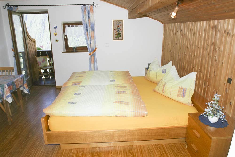 verfügt über einen Balkon mit herrlichem Blick auf das Schnalstal. Es erwartet Sie eine gut ausgestattete Wohnküche mit Holzherd, Kaffeemaschine und Kühlschrank, Sat-TV, Radio, Bättwäsche, Handtücher und Geschirrtücher sind vorhanden. Ideal für Familien von 2 bis 4 Personen, 45 m².